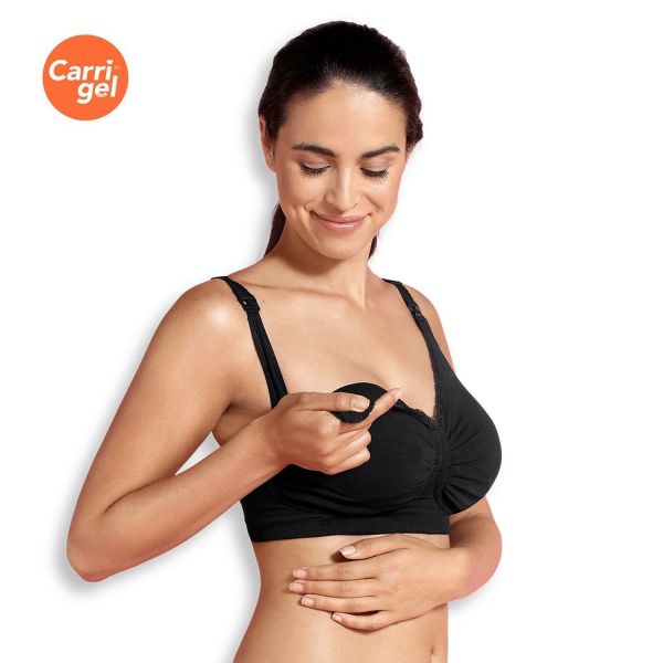De Carriwell Padded Gelbeugel Voedingsbh Zwart Mt. XXL biedt voldoende comfort tijdens de zwangerschap en wanneer je borstvoeding geeft. Dankzij de gelbeugel ervaar je de comfort en ondersteuning zonder het gebruik van een harde beugel. De bh heeft een perfecte pasvorm en dankzij de uitneembare pads past de bh zich aan naar de vorm van je lichaam. Ook wanneer je een strak t-shirt draagt verbergen de pads de zoogkompressen en zorgen voor een glad oppervlak. De bh is eenvoudig te openen met één hand en wordt geleverd met een losse bh-extender. Zo verbreedt je de onderwijdte en is de bh ook ideaal voor tijdens de zwagerschap. De cups kunnen volledig worden geopend voor een optimaal huid-op-huid contact tijdens het voeden. Verder is de voedingsbh gemaakt van hoogwaardig materiaal en voelt erg comfortabel aan.